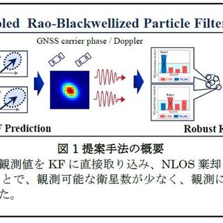 従来不可欠とされてきた衛星信号の波の数を正確に数え上げる「整数アンビギュイティ」2)の処理を行わない確率的なアプローチにより、信号が途切れやすい場所でも頑健な位置推定を実現