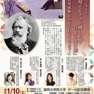 福岡女学院大学(福岡市南区/学長:副島 雄児)は、1月10日(土)に琴とピアノの音色を楽しみながら、音楽と文化のつながりに触れるレクチャーコンサートを開催する。コンサートは二部制となっており、音楽に詳しくない方や初めて琴に触れる方でも気軽に楽しめる内容となっている。